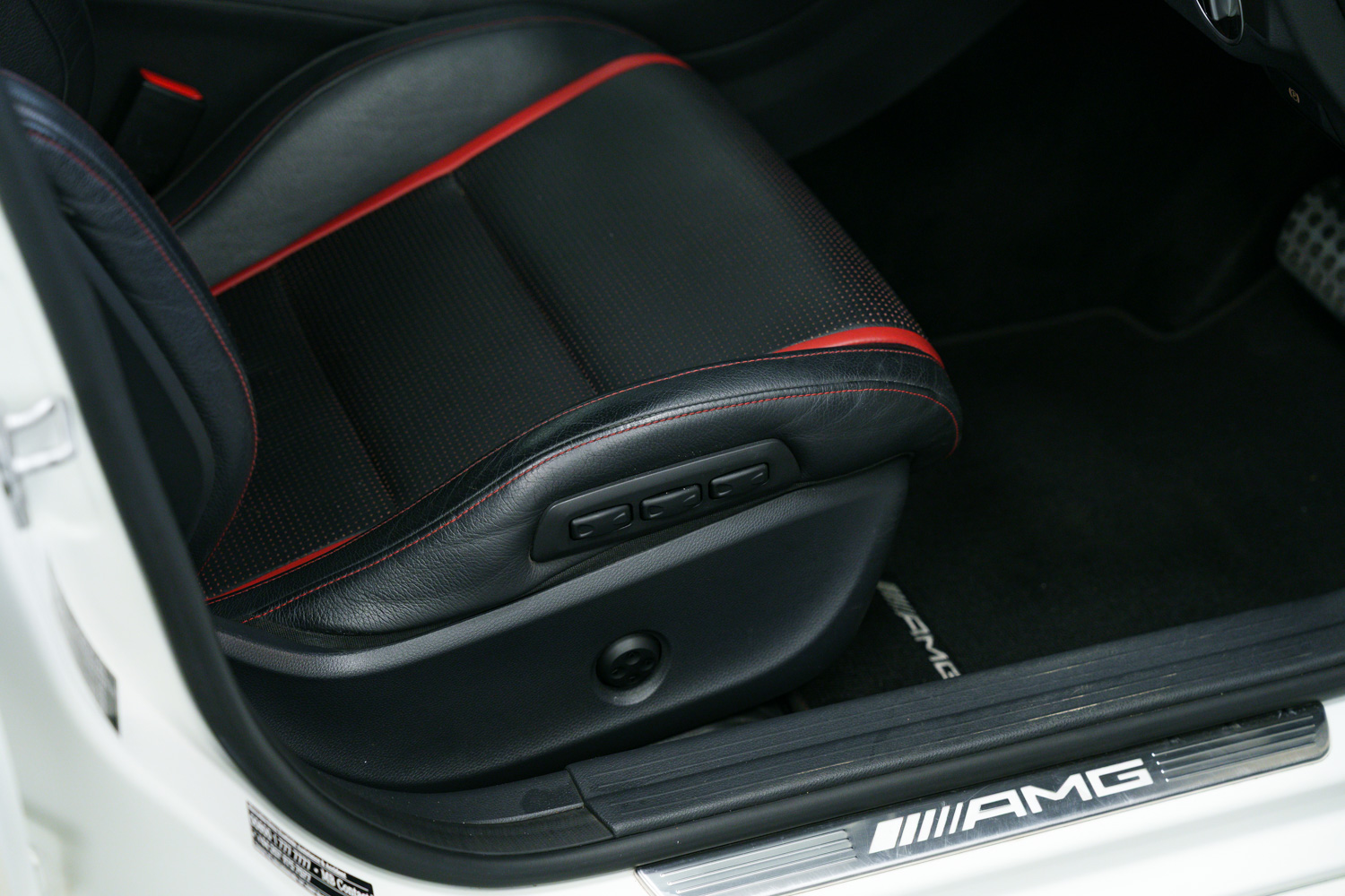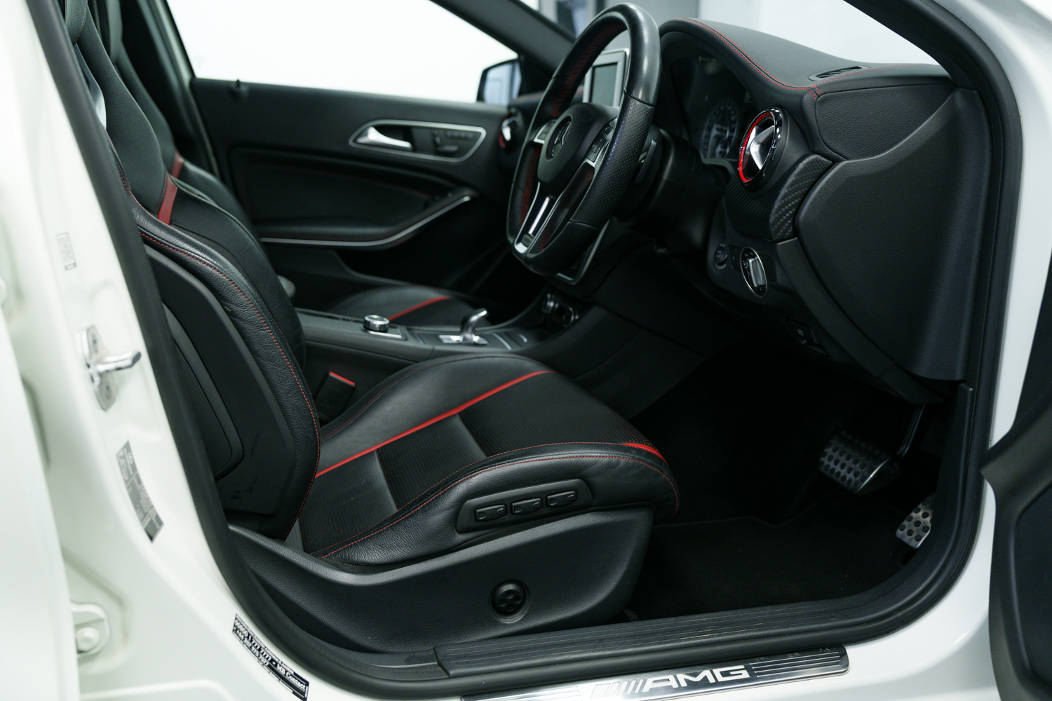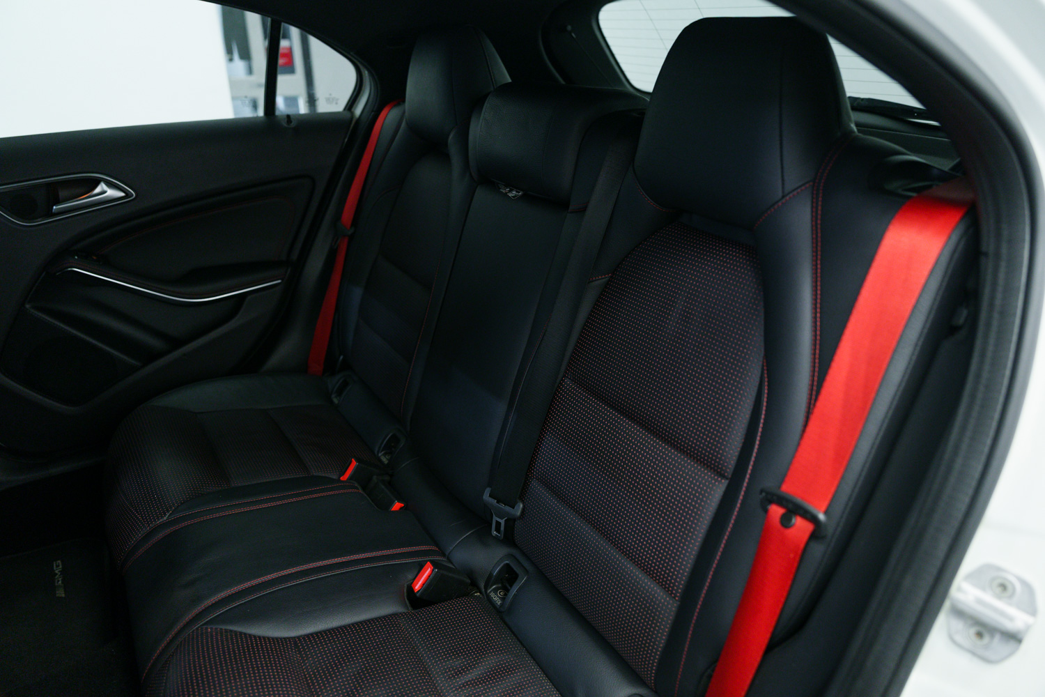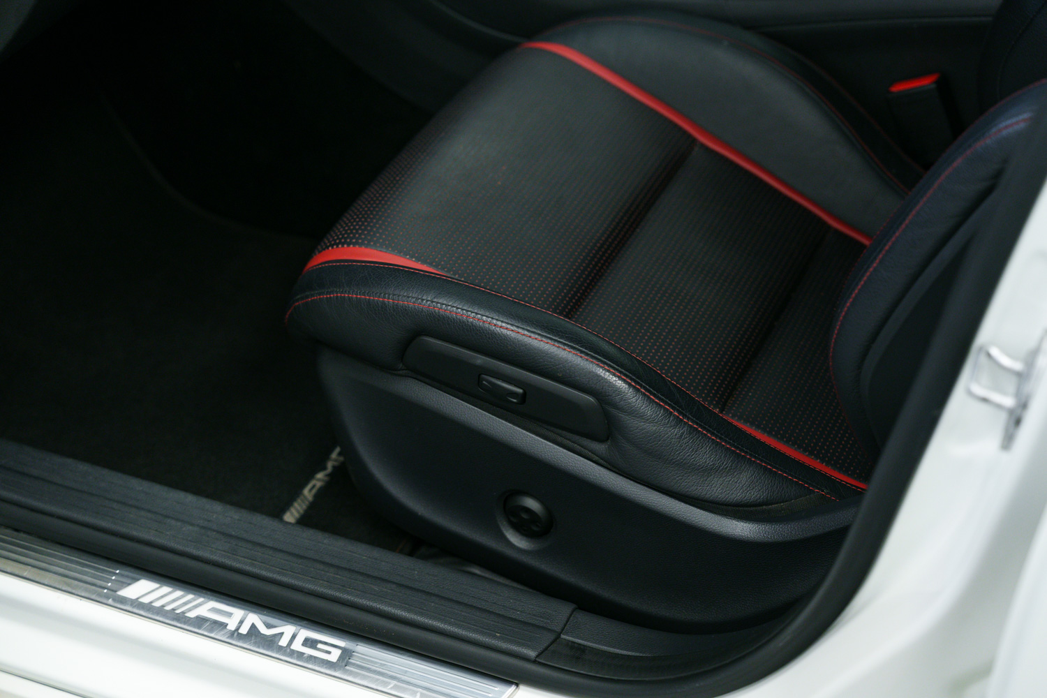 Lovely options list Inc Bluetooth Phone Connection, Keyless Go, 19in Alloy Wheels - AMG Multi-Spoke Design - Painted in Matt Black, Exhaust System - AMG Performance, AMG Exclusive Package - Leather - Lava Black with Red Perforations, Centre Armrest with Twin Cup Holder, Memory Package, Seats - Heated Front, Seat Belts - Red, Front & Rear Parking Sensors, Aero Rear Spoiler, Auto Lights & Wipers, Bi Xenon Headlights, Multi Function Steering Wheel, AMG Performance Seats, Cruise Control, Speed Limiter, Dual Zone Climate Control, USB & Media Inputs, DAB Digital Radio, Tyre Pressure Monitoring System (TPMS), Privacy Glass.