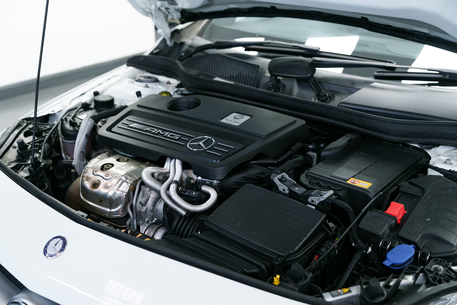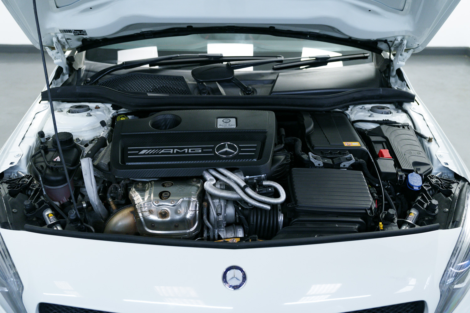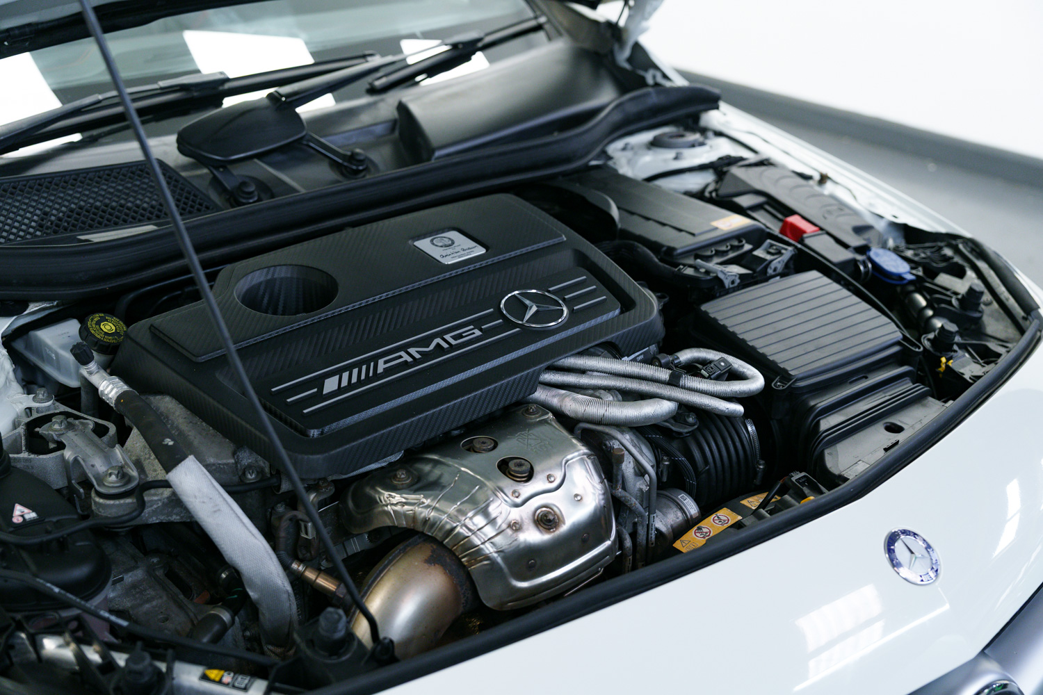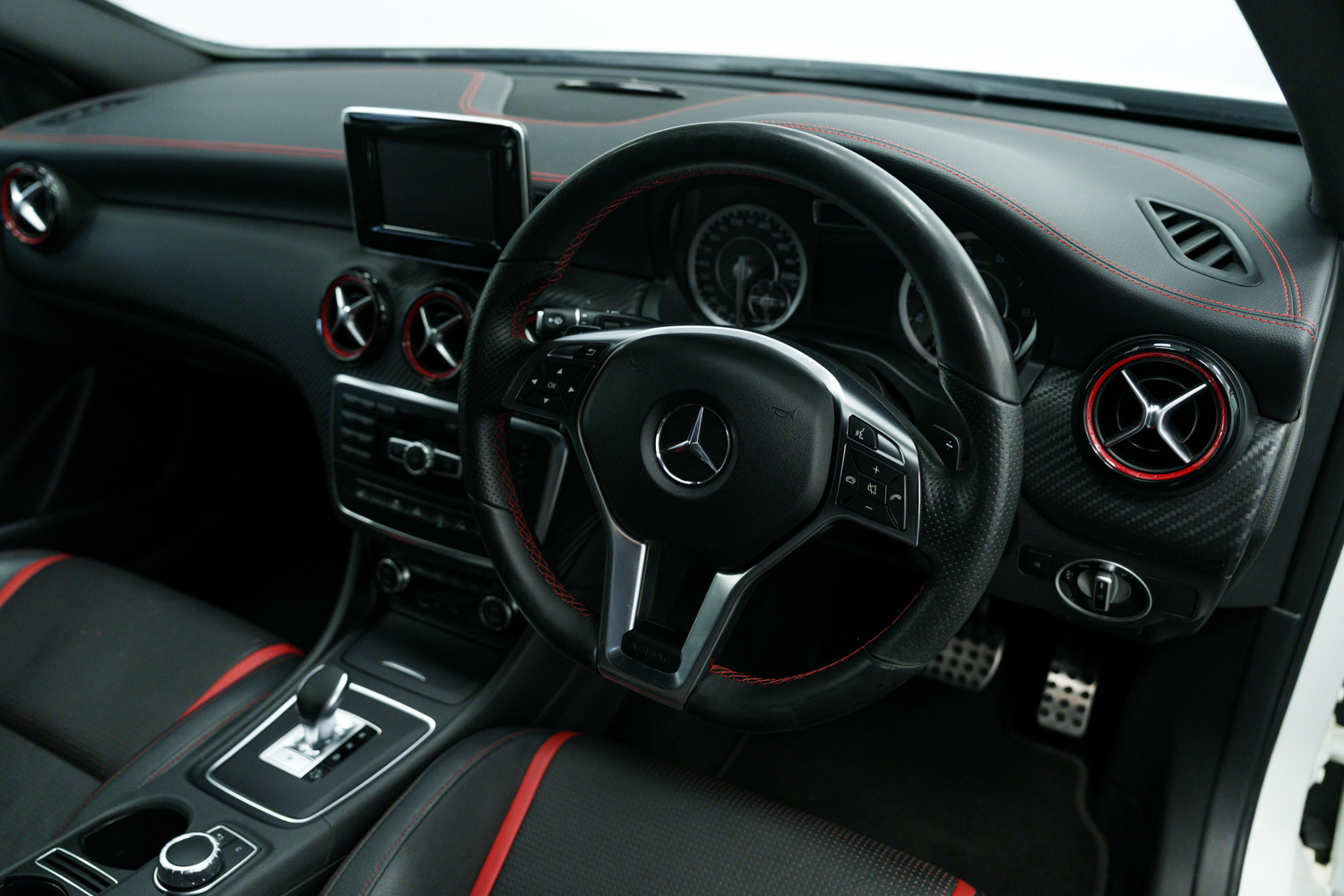 Lovely options list Inc Bluetooth Phone Connection, Keyless Go, 19in Alloy Wheels - AMG Multi-Spoke Design - Painted in Matt Black, Exhaust System - AMG Performance, AMG Exclusive Package - Leather - Lava Black with Red Perforations, Centre Armrest with Twin Cup Holder, Memory Package, Seats - Heated Front, Seat Belts - Red, Front & Rear Parking Sensors, Aero Rear Spoiler, Auto Lights & Wipers, Bi Xenon Headlights, Multi Function Steering Wheel, AMG Performance Seats, Cruise Control, Speed Limiter, Dual Zone Climate Control, USB & Media Inputs, DAB Digital Radio, Tyre Pressure Monitoring System (TPMS), Privacy Glass.