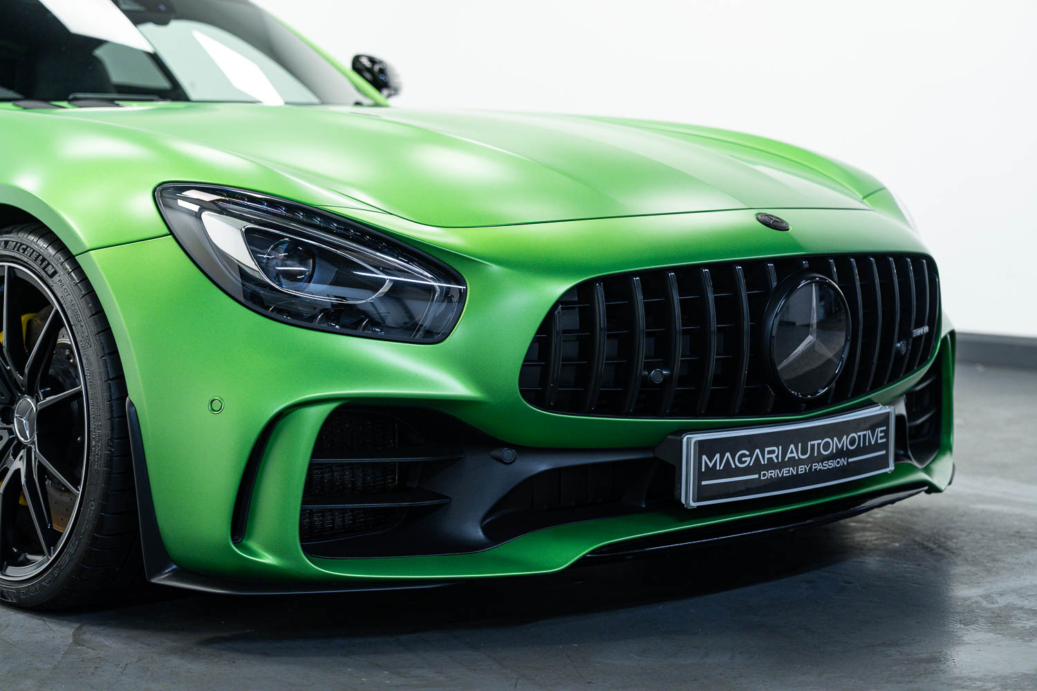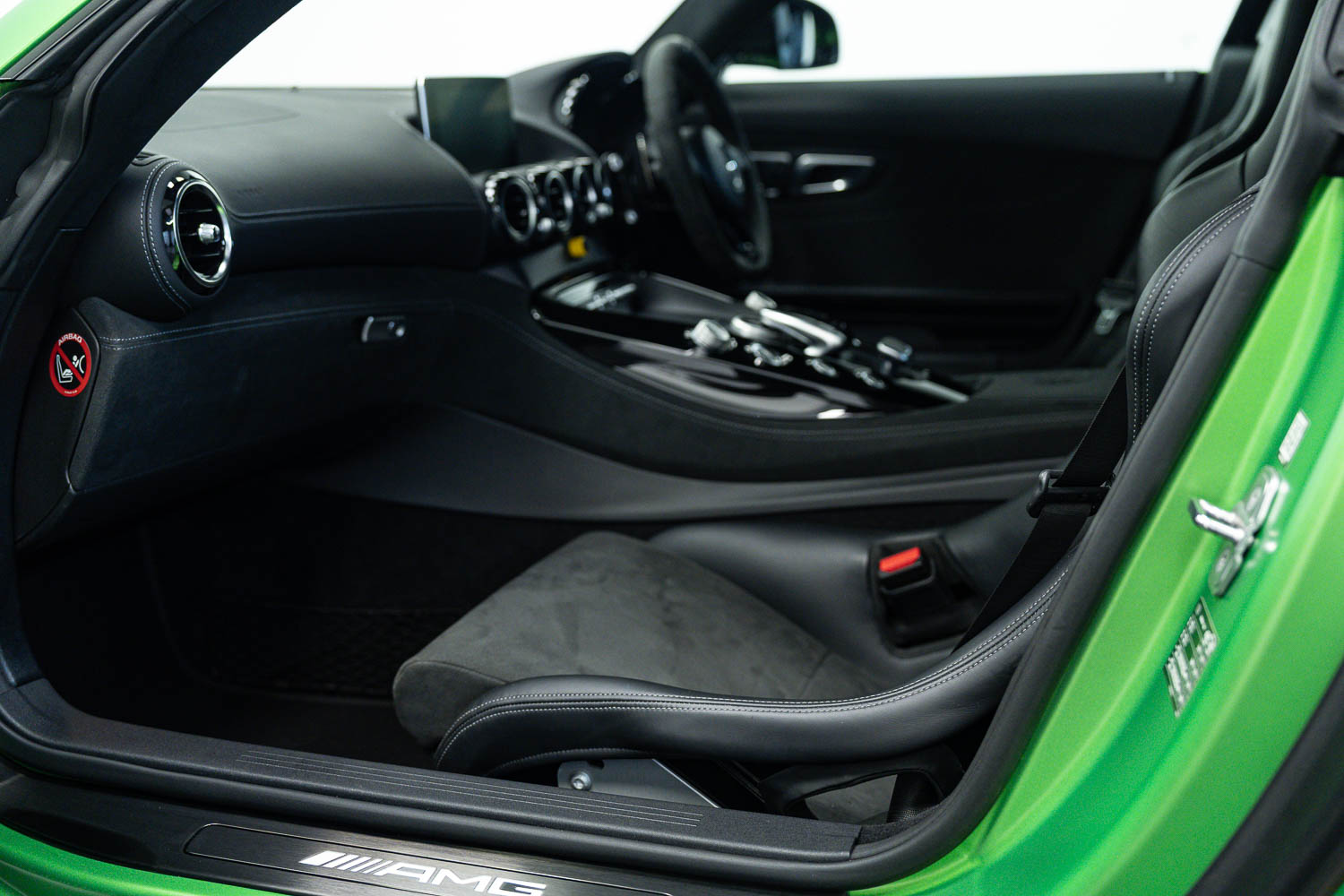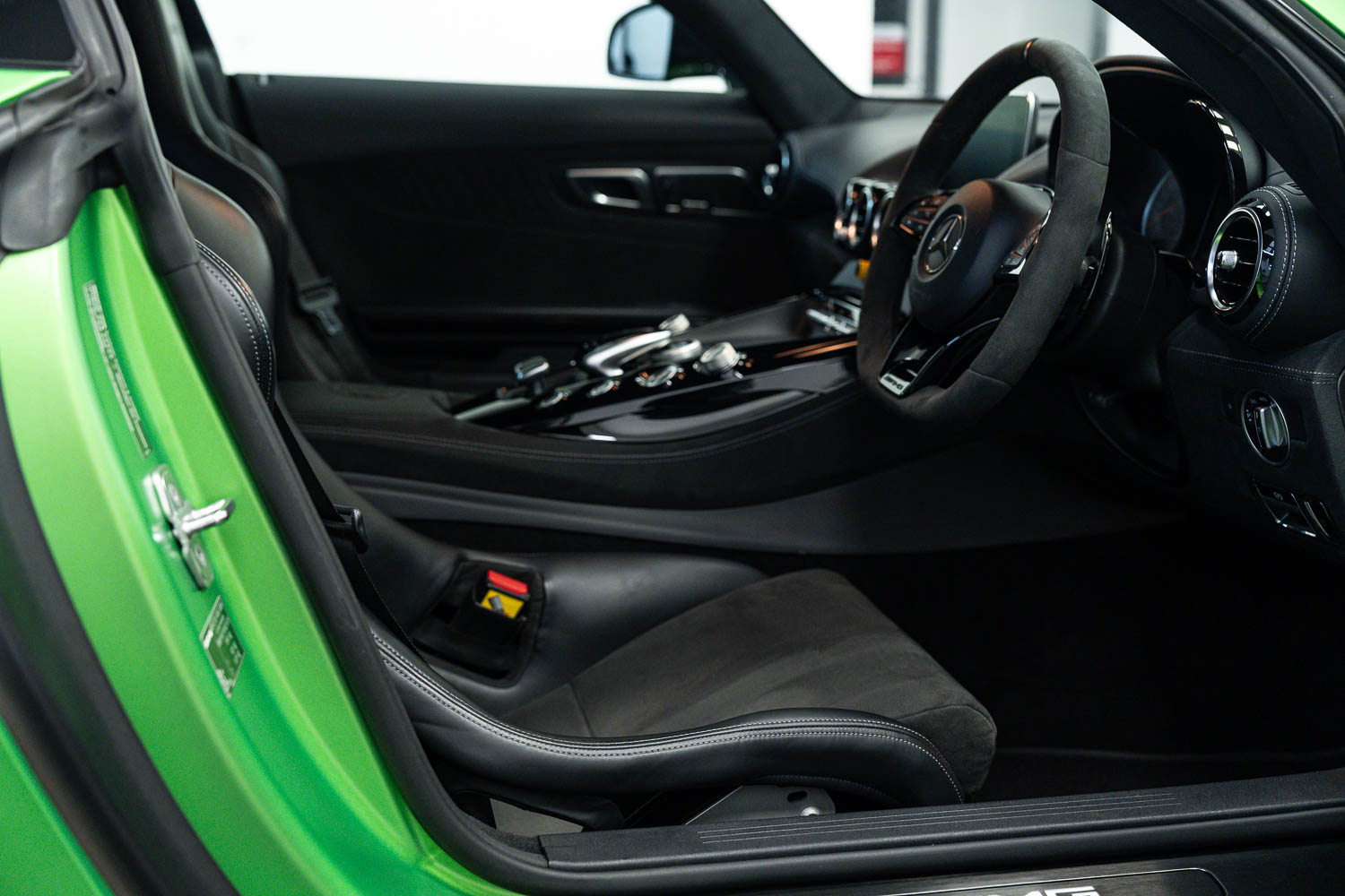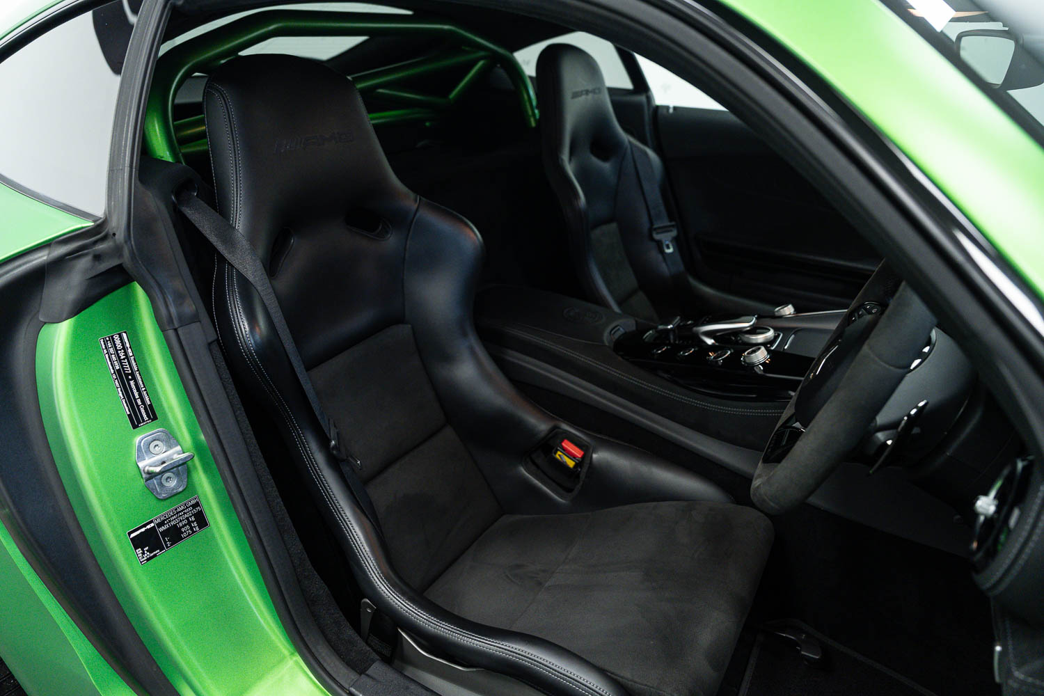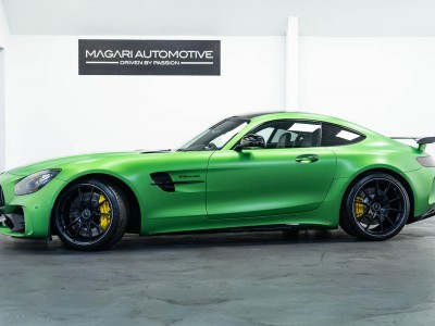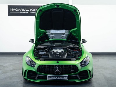 Finished in Green Hell Magno with 1/2 leather interior, full Mercedes-Benz service history, last serviced at 24,004 miles on 14/04/2025, gearbox service carried out at 11,524 miles on 29/12/2022, spark plugs replaced at 17,774 miles on 30/04/2024, MOT until 8th May2026 (no advisories), AMG performance bucket seats with 4 point harnesses (harnesses are present, just not shown in the image suite), alcantara AMG performance steering wheel, gloss black bonnet blades, immaculate condition all round, full PPF fitted, matching Michelin tyres all round with 5-6mm tread, Ghost immobiliser.
