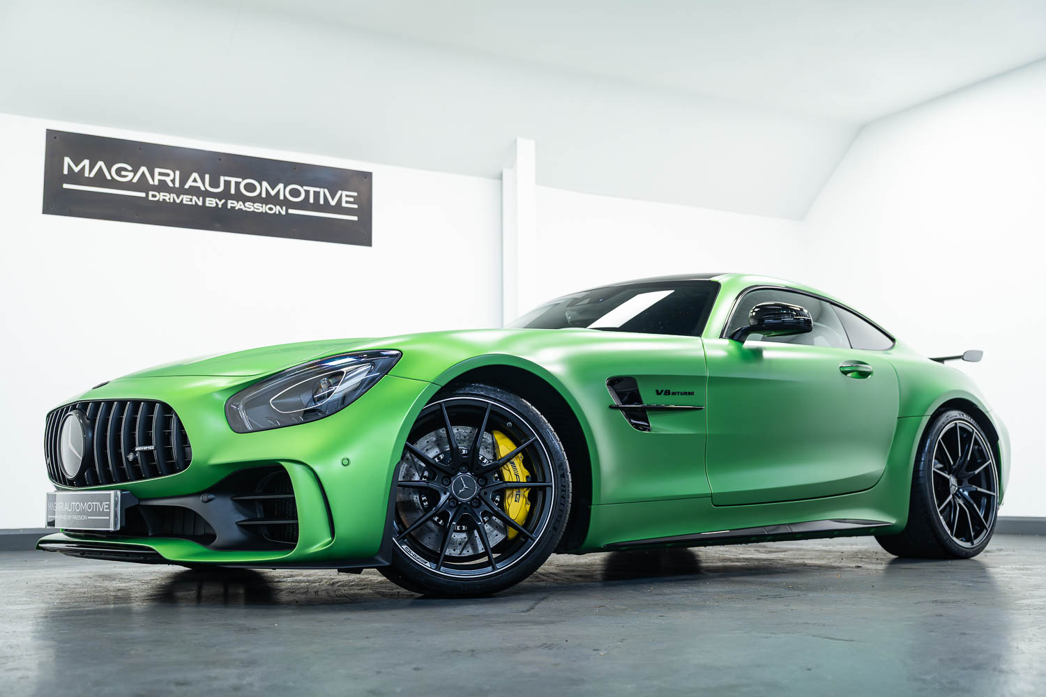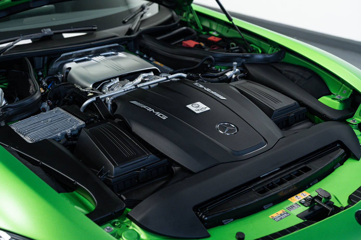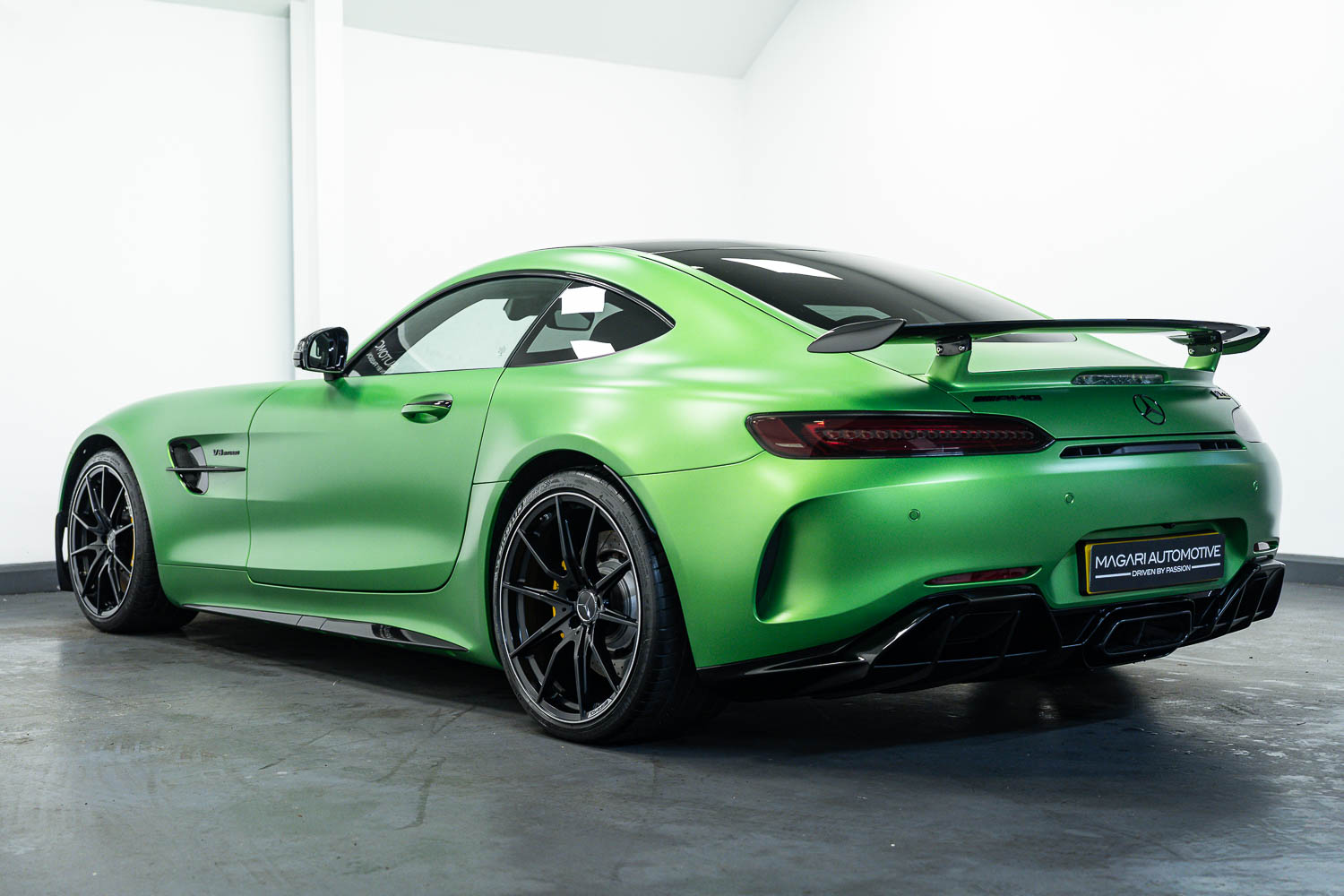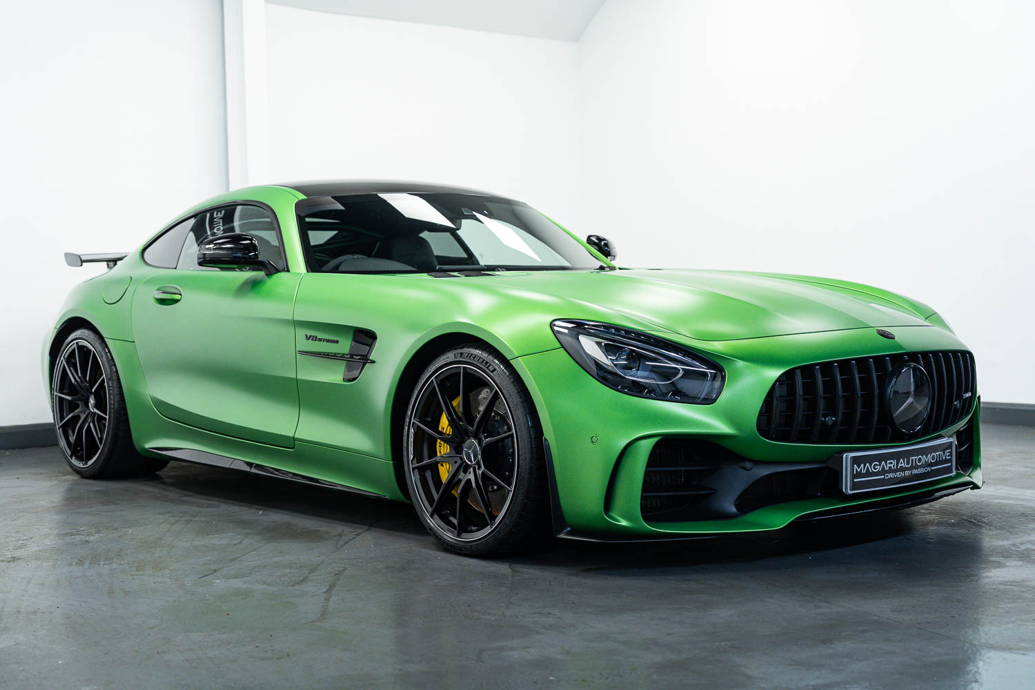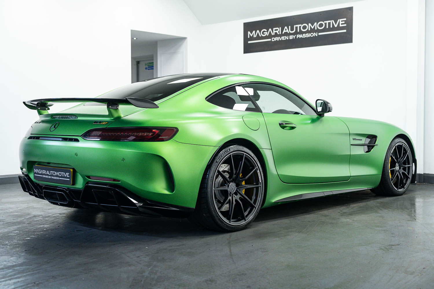 Finished in Green Hell Magno with 1/2 leather interior, full Mercedes-Benz service history, last serviced at 24,004 miles on 14/04/2025, gearbox service carried out at 11,524 miles on 29/12/2022, spark plugs replaced at 17,774 miles on 30/04/2024, MOT until 8th May2026 (no advisories), AMG performance bucket seats with 4 point harnesses (harnesses are present, just not shown in the image suite), alcantara AMG performance steering wheel, gloss black bonnet blades, immaculate condition all round, full PPF fitted, matching Michelin tyres all round with 5-6mm tread, Ghost immobiliser.