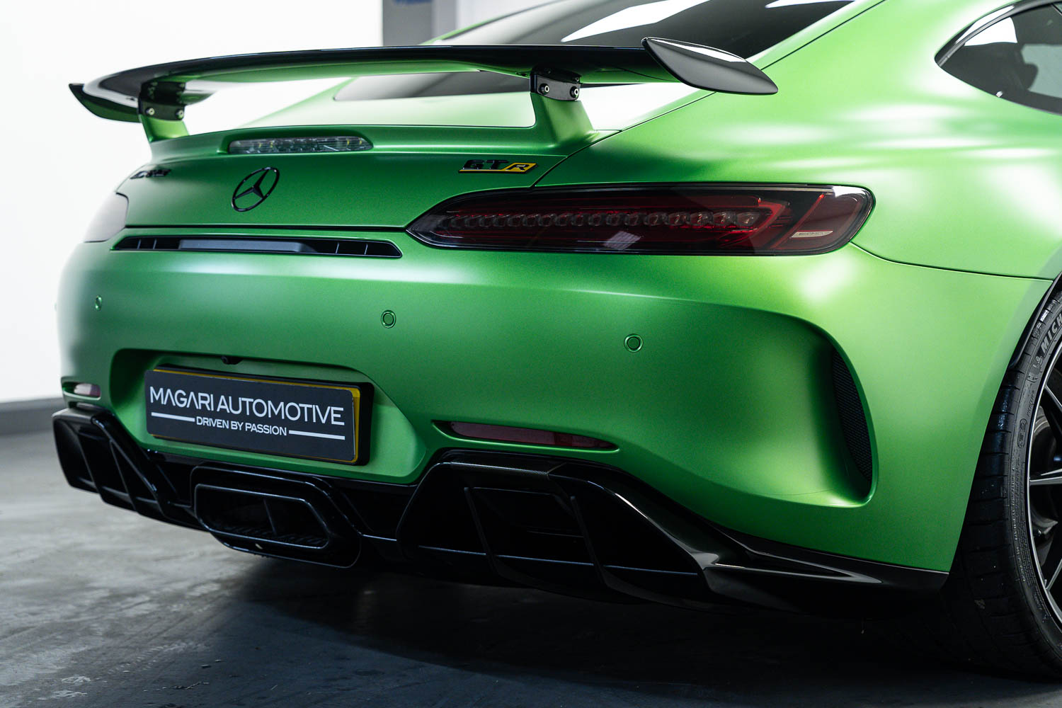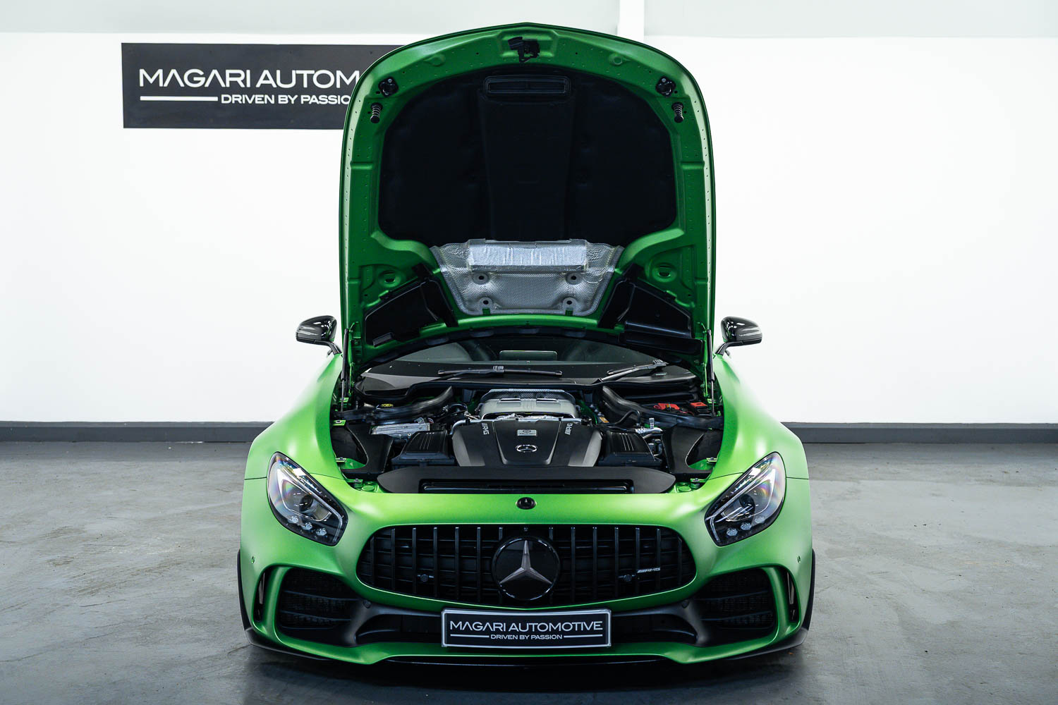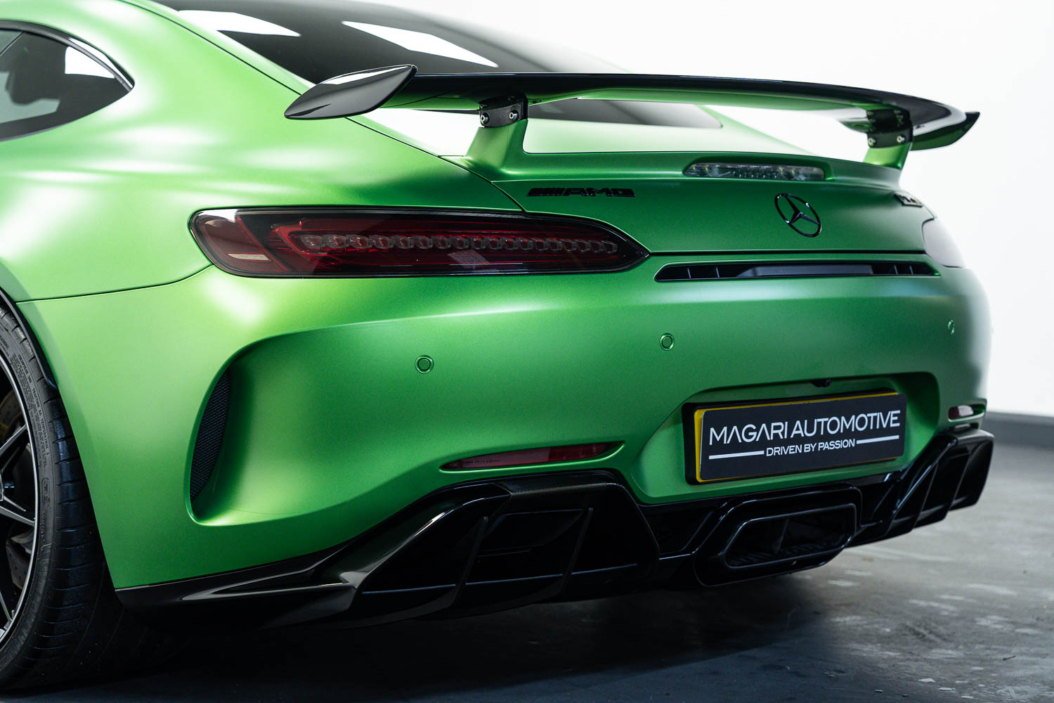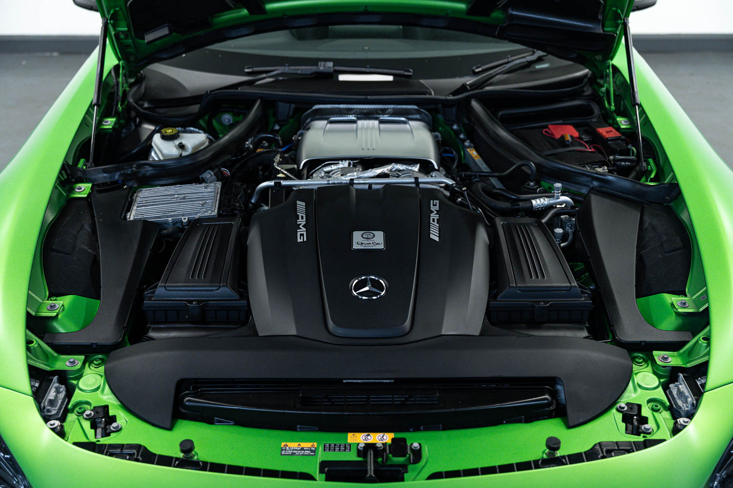 Finished in Green Hell Magno with 1/2 leather interior, full Mercedes-Benz service history, last serviced at 24,004 miles on 14/04/2025, gearbox service carried out at 11,524 miles on 29/12/2022, spark plugs replaced at 17,774 miles on 30/04/2024, MOT until 8th May2026 (no advisories), AMG performance bucket seats with 4 point harnesses (harnesses are present, just not shown in the image suite), alcantara AMG performance steering wheel, gloss black bonnet blades, immaculate condition all round, full PPF fitted, matching Michelin tyres all round with 5-6mm tread, Ghost immobiliser.