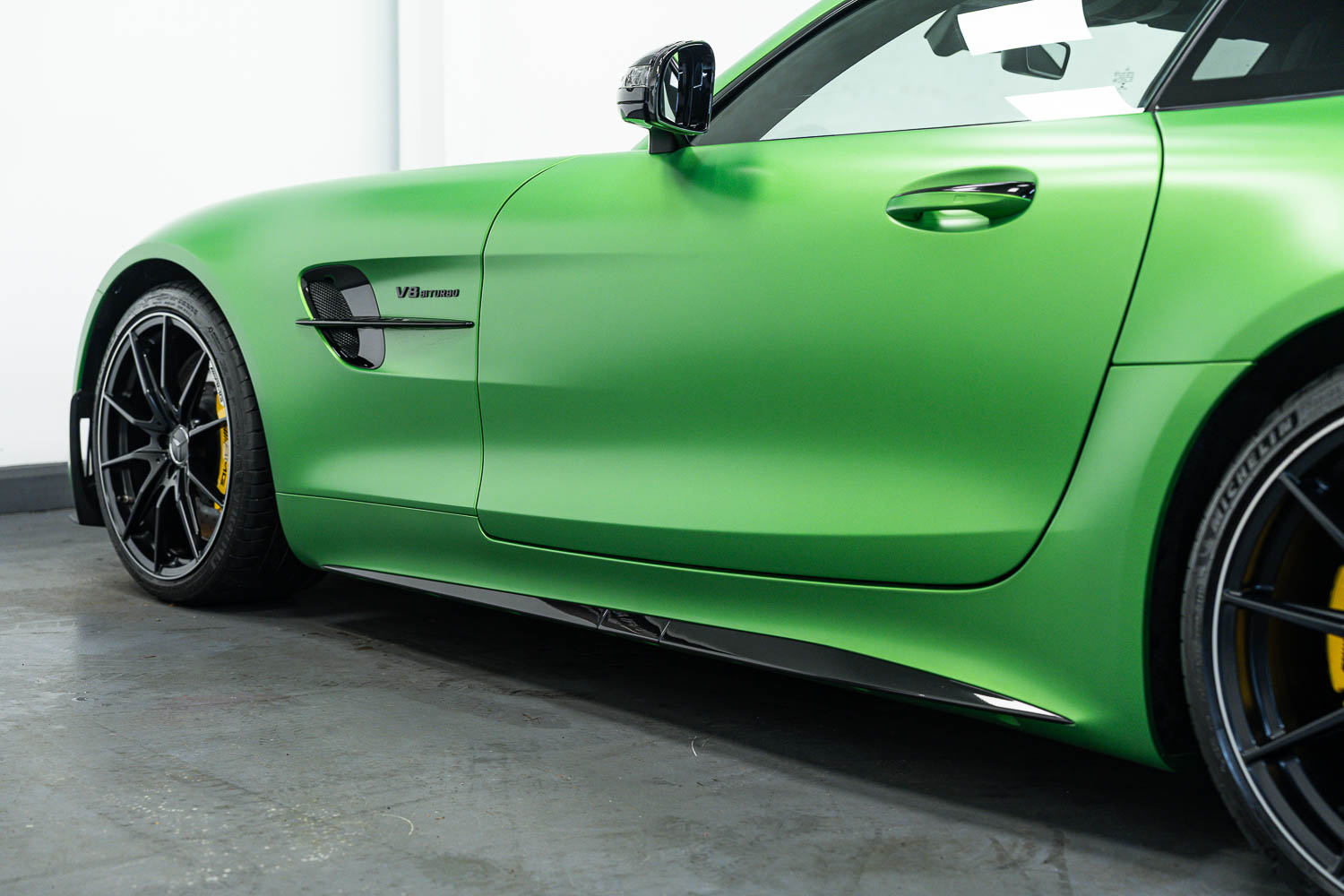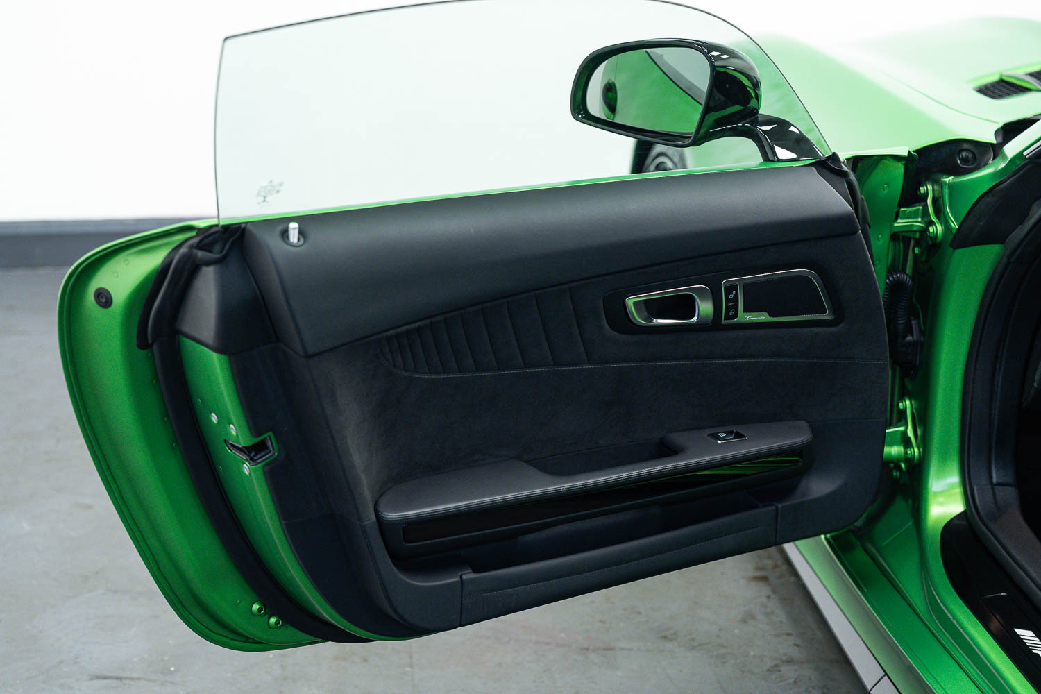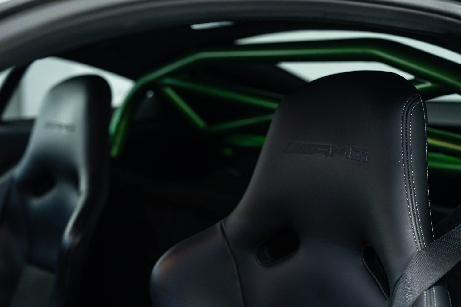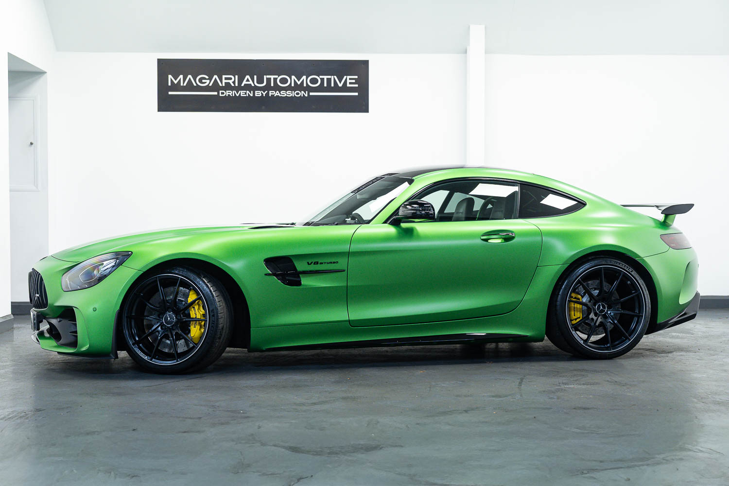 Finished in Green Hell Magno with 1/2 leather interior, full Mercedes-Benz service history, last serviced at 24,004 miles on 14/04/2025, gearbox service carried out at 11,524 miles on 29/12/2022, spark plugs replaced at 17,774 miles on 30/04/2024, MOT until 8th May2026 (no advisories), AMG performance bucket seats with 4 point harnesses (harnesses are present, just not shown in the image suite), alcantara AMG performance steering wheel, gloss black bonnet blades, immaculate condition all round, full PPF fitted, matching Michelin tyres all round with 5-6mm tread, Ghost immobiliser.
