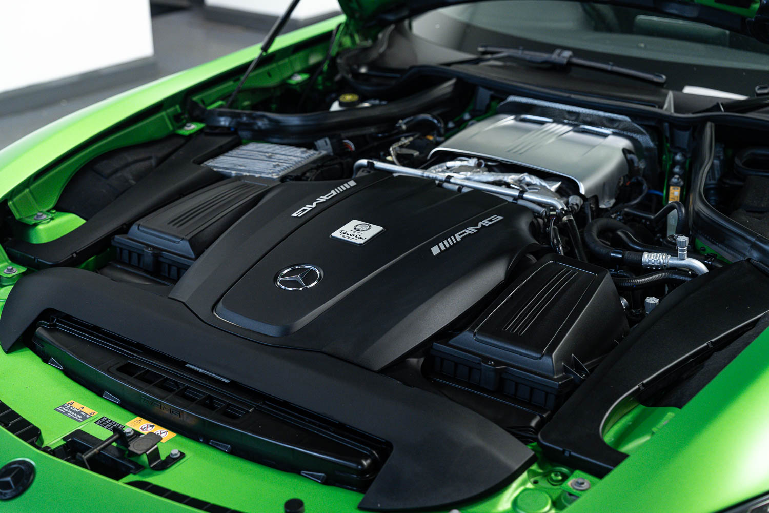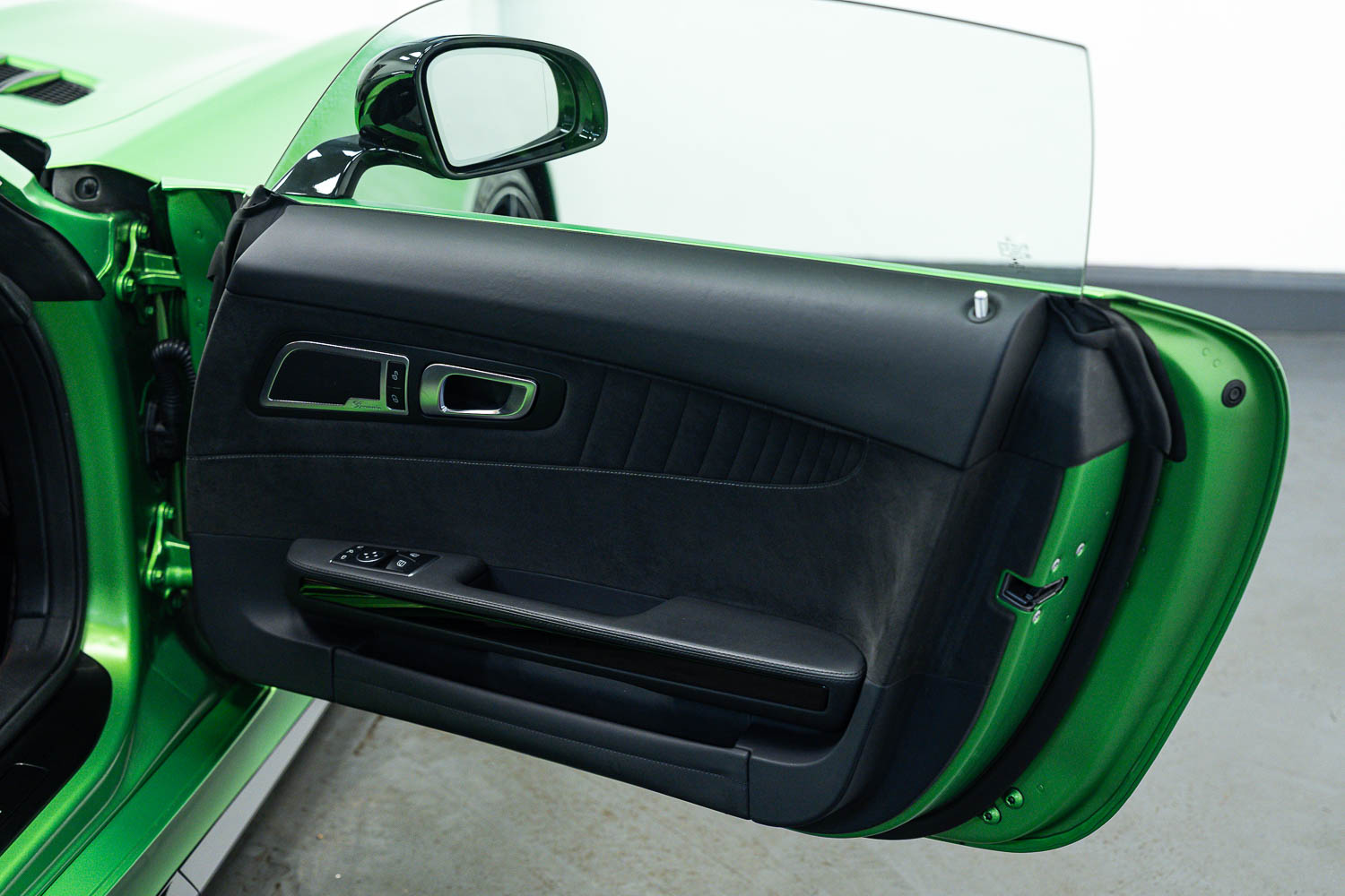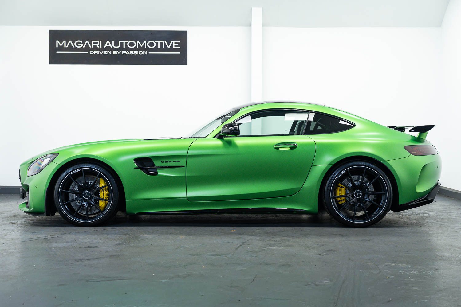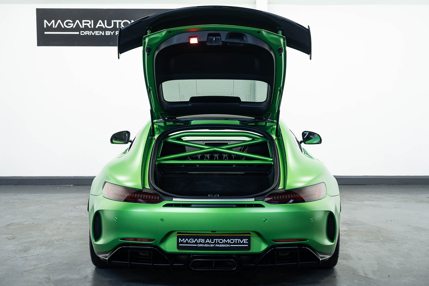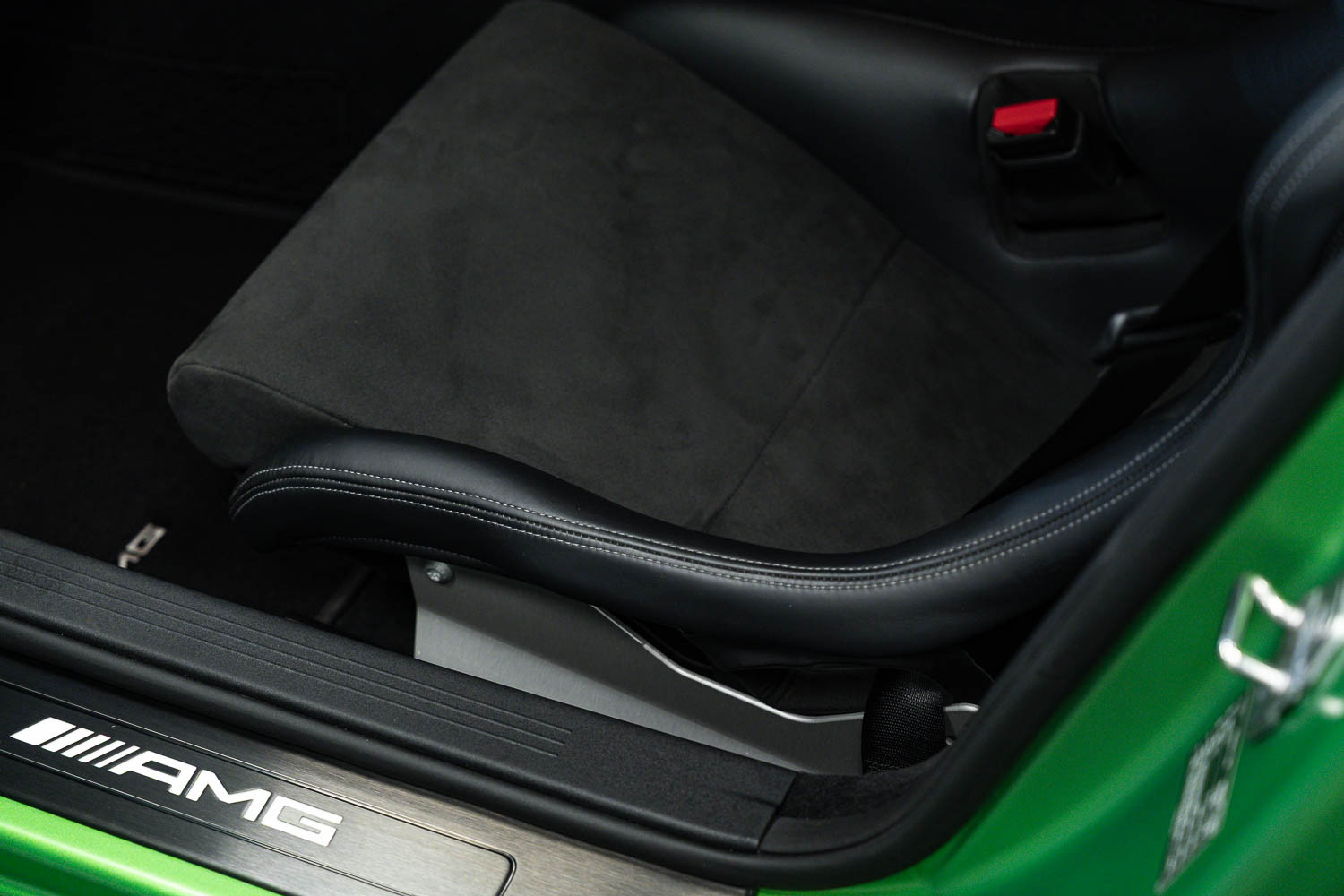 Finished in Green Hell Magno with 1/2 leather interior, full Mercedes-Benz service history, last serviced at 24,004 miles on 14/04/2025, gearbox service carried out at 11,524 miles on 29/12/2022, spark plugs replaced at 17,774 miles on 30/04/2024, MOT until 8th May2026 (no advisories), AMG performance bucket seats with 4 point harnesses (harnesses are present, just not shown in the image suite), alcantara AMG performance steering wheel, gloss black bonnet blades, immaculate condition all round, full PPF fitted, matching Michelin tyres all round with 5-6mm tread, Ghost immobiliser.