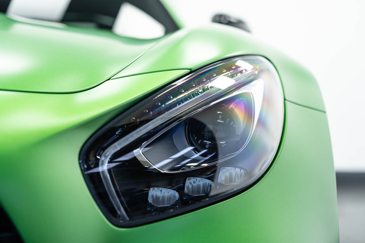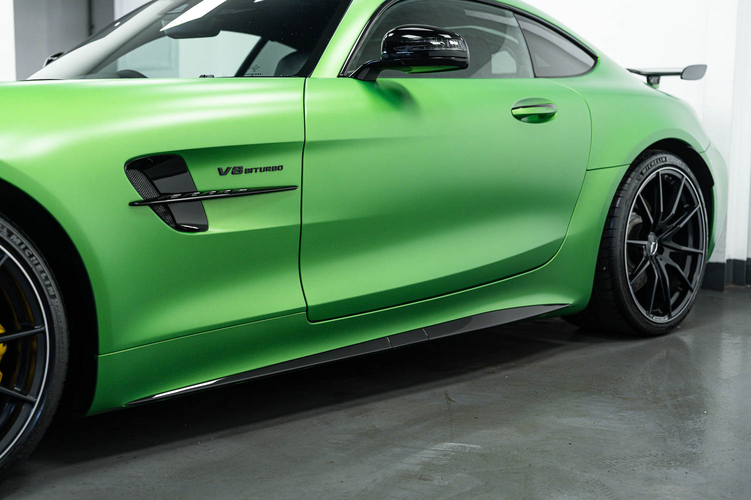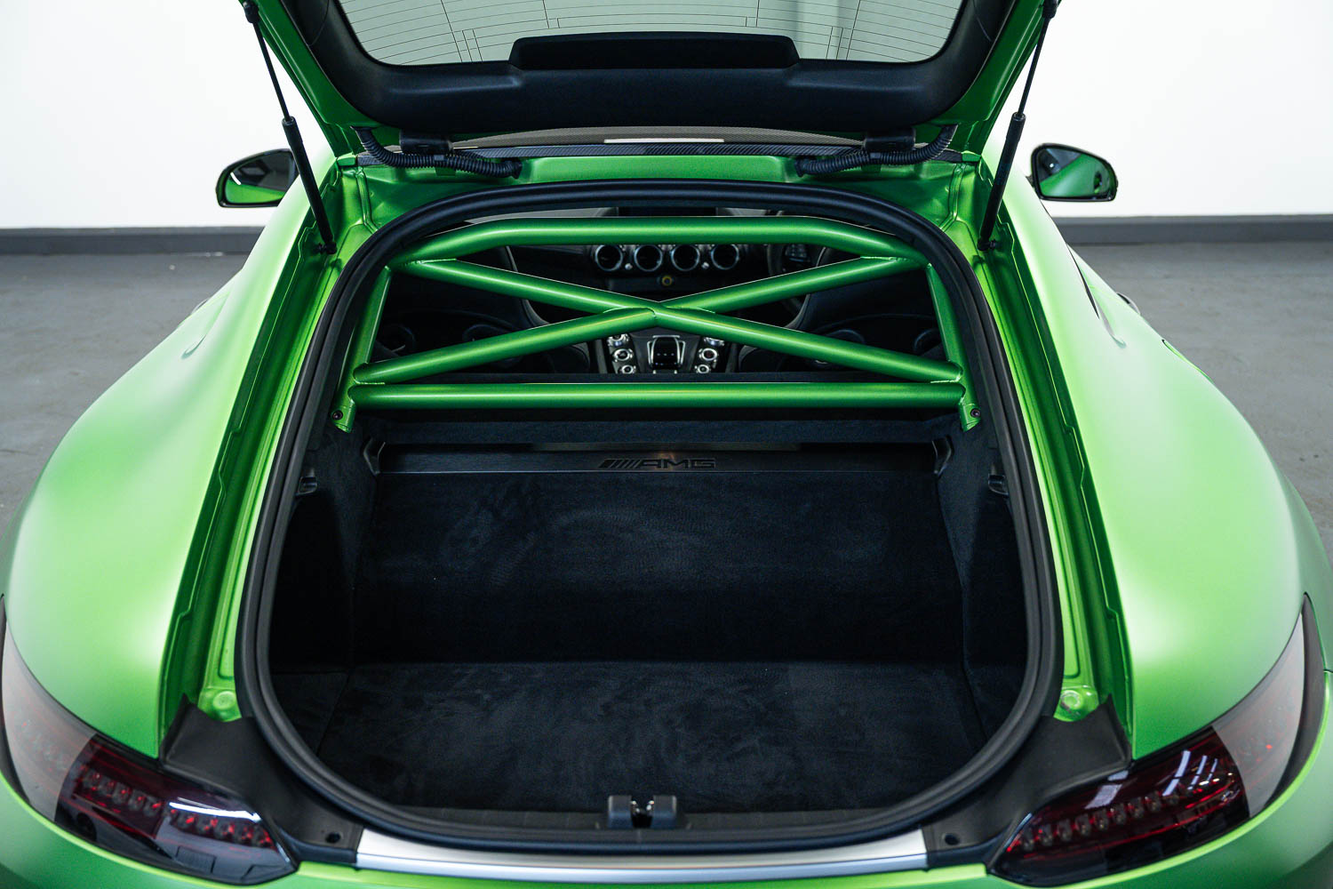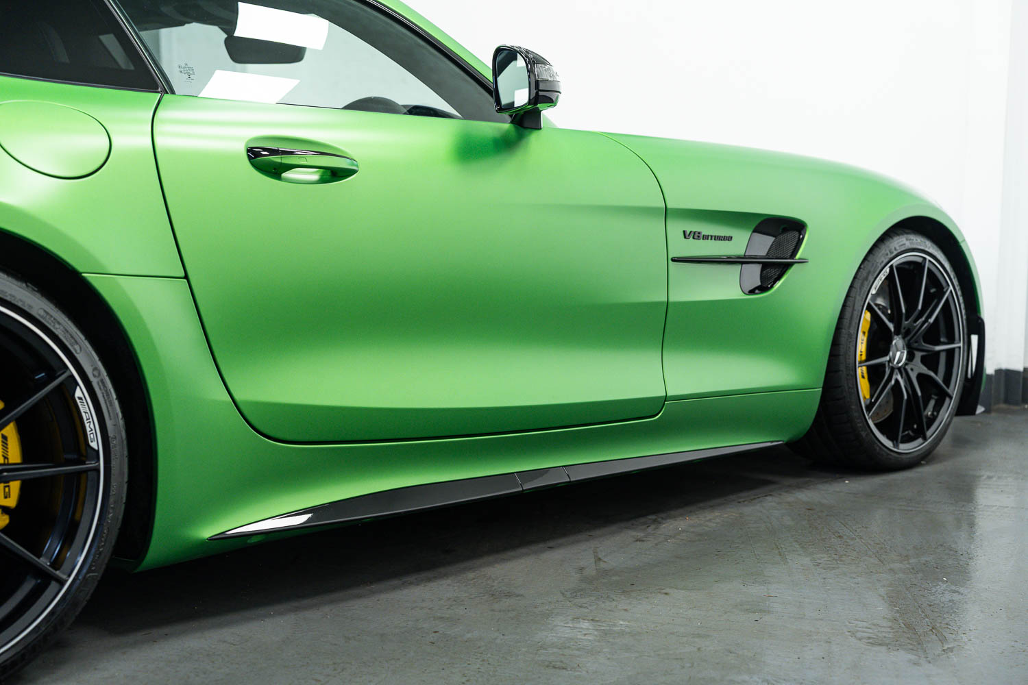 Finished in Green Hell Magno with 1/2 leather interior, full Mercedes-Benz service history, last serviced at 24,004 miles on 14/04/2025, gearbox service carried out at 11,524 miles on 29/12/2022, spark plugs replaced at 17,774 miles on 30/04/2024, MOT until 8th May2026 (no advisories), AMG performance bucket seats with 4 point harnesses (harnesses are present, just not shown in the image suite), alcantara AMG performance steering wheel, gloss black bonnet blades, immaculate condition all round, full PPF fitted, matching Michelin tyres all round with 5-6mm tread, Ghost immobiliser.
