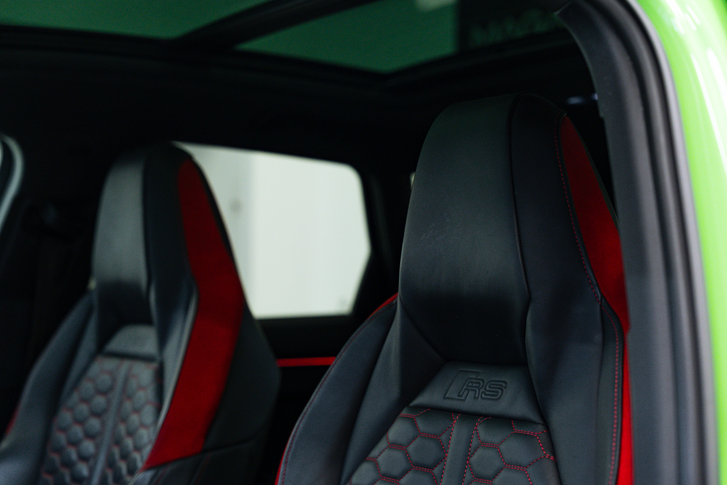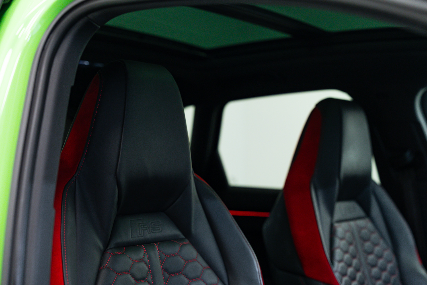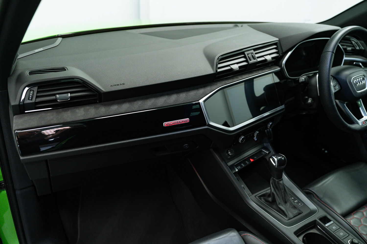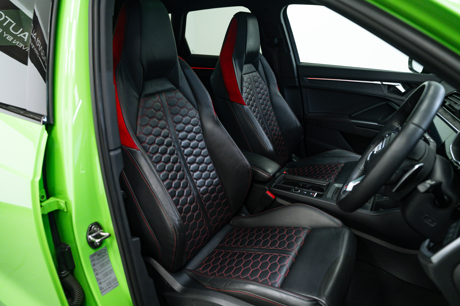 Fantastic options list inc. Fine Nappa Leather - Black with Express Red Stitching, Steering Wheel - 3-Spoke Leather - Multifunction Plus - Shift Paddles, Adaptive Suspension, Switchable Exhaust, Electrically Folding Door Mirrors, Power Tailgate, Auto Lights & Wipers, Hight Beam Assist, Keyless Entry & Start, Voice Control, Adaptive Cruise Control, Speed Limiter, Tyre Pressure Monitoring System (TPMS), Front & Rear Parking Sensors, Reverse Camera, Auto Dimming Rear View Mirror, Sliding Panoramic Sunroof, Virtual Cockpit, Heated Seats, Bluetooth Phone Connection, Dual Zone Climate Control, Sliding Front Arm Rest, USC-C Inputs, Lane Departure Warning, Audi Side Assist, Background Lighting, Dynamic Steering, Audi Sports Differential, DAB Digital Radio, Satellite Navigation, Auto Hill Hold Assist, SONOS Surround Sound Stereo, 21in Alloy Wheels, Electric Front Seats, Lumbar Support, Privacy Glass, Illuminated Door Sill Covers, Bi LED Headlights.