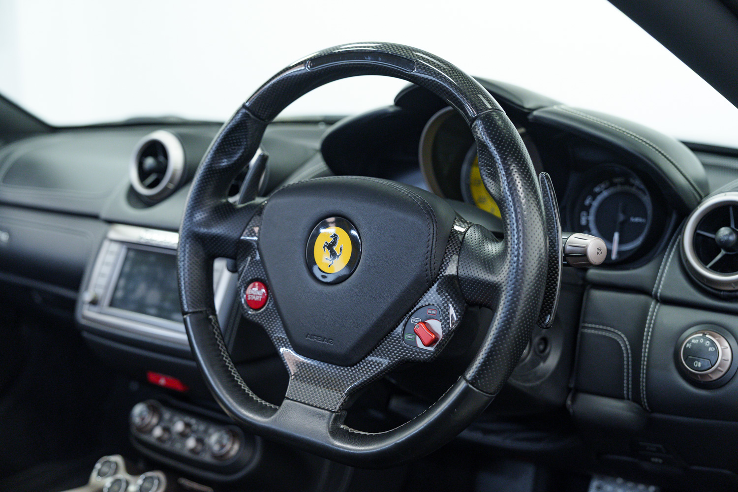 Brilliant options list Inc. Brake calipers - Aluminium, Scuderia Ferrari Shields on Front Wings, Black External A Pillars, 20in Alloy Wheels - Diamond Finished Sport Rim, Handling Speciale Exterior Sports Grilles, Carbon Fibre Driver Zone and Steering Wheel with LEDs, Daytona Style Seat Trim, Daytona Style for Rear Seats, Yellow Rev Counter, Colour Upon Request for Special Stitching, Adaptive Front Lighting System, Cruise Control, Handling Speciale Package, Outer and Inner Electrochromic Mirrors, Rear Parking Camera, Front Parking Sensors, Electric Folding Door Mirrors, Heated Front Seats, Auto Lights & Wipers, Voice Control, Satellite Navigation, Bluetooth Phone Connection, USB & AUX Inputs, Dual Zone Climate Control, Bi Xenon Headlights, Electric Seats With Drivers Memory, Ferrari Carbon Ceramic Brakes, Electrically Adjustable Steering Column, Tyre Pressure Monitoring System (TPMS).