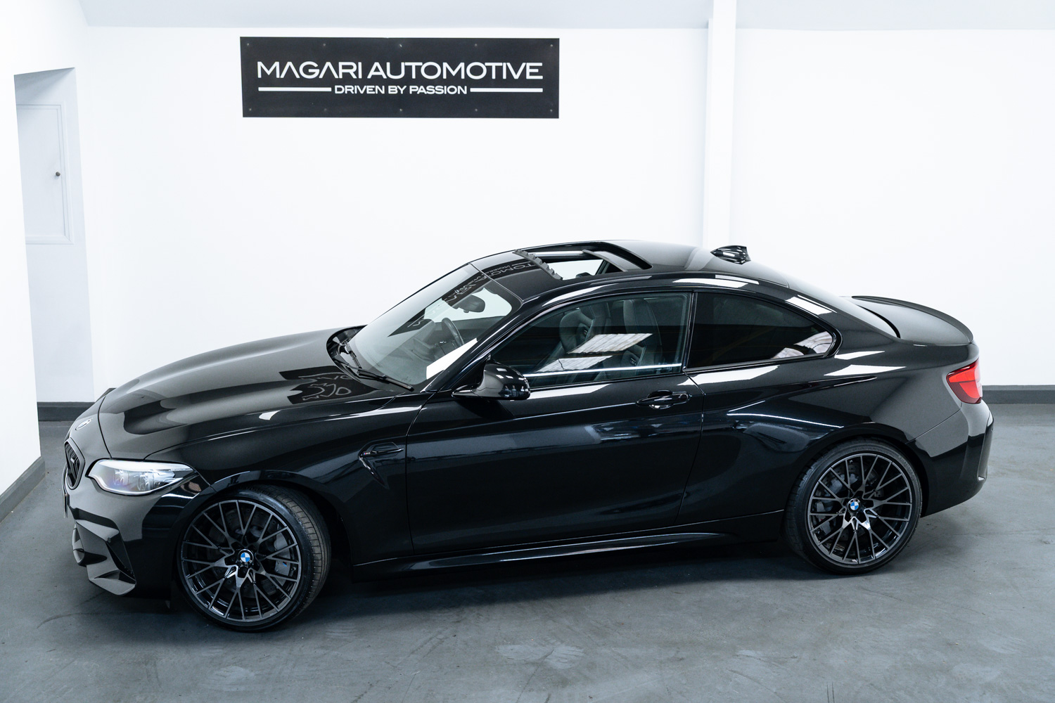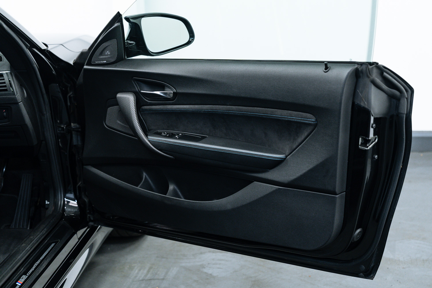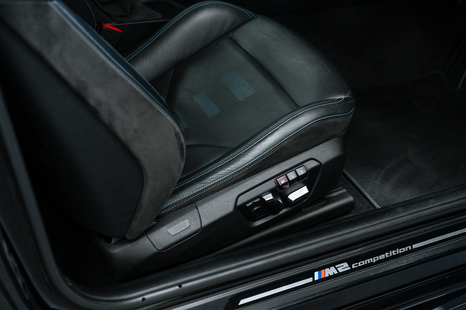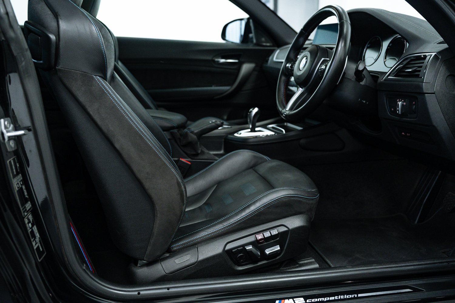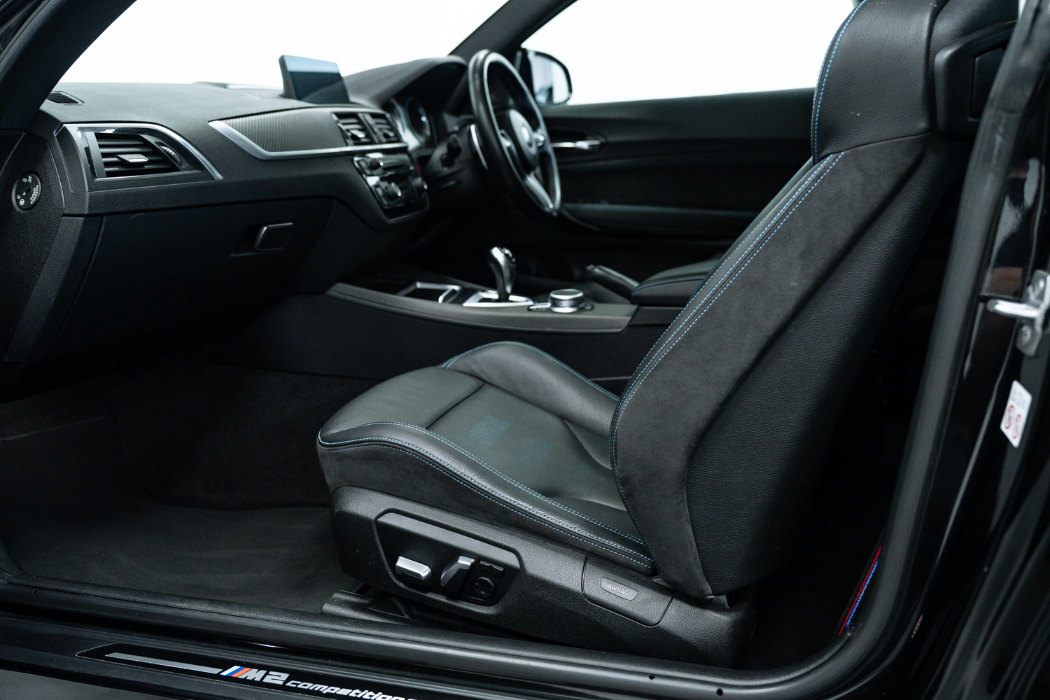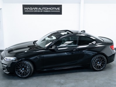 Lovely options list Inc M Drivers Package, M2 Comfort Pack, M2 Plus Pack, Upgraded M2 Competition Braking System, Electric Glass Sunroof, BMW Icon Adaptive LED Headlights, Seat Adjustment - Front Electric with Driver Memory, Loudspeaker System - Harman Kardon, Enhanced Bluetooth Telephone Preparation with Wireless Charging, Driving Assistant, Comfort Access System, Reversing Assist Camera, Seat Heating for Driver and Front Passenger, Sun Protection Glazing, Exterior Mirrors - Electrically Folding with Anti Dazzle, 19in M Y-Spoke Alloy Wheels Style 788M with Mixed Tyres in Black, Speed Limit Info, High-Beam Assistant, Dakota Leather - Black with Blue Highlight and Perforated Design, Auto Lights & Wipers, Voice Control, Cruise Control, Speed Limiter, Front & Rear Parking Sensors, Dual Zone Climate Control, Satellite Navigation, Bluetooth Phone Connection, Sliding Front Armrest, USB Inputs, Ambient Lighting, Multi Function Steering Wheel, Tyre Pressure Monitoring System (TPMS), DAB Radio Reception, Carbon Inlays.