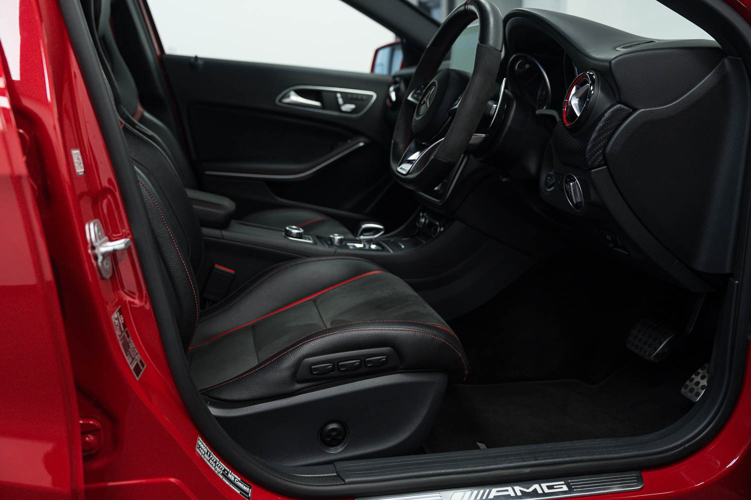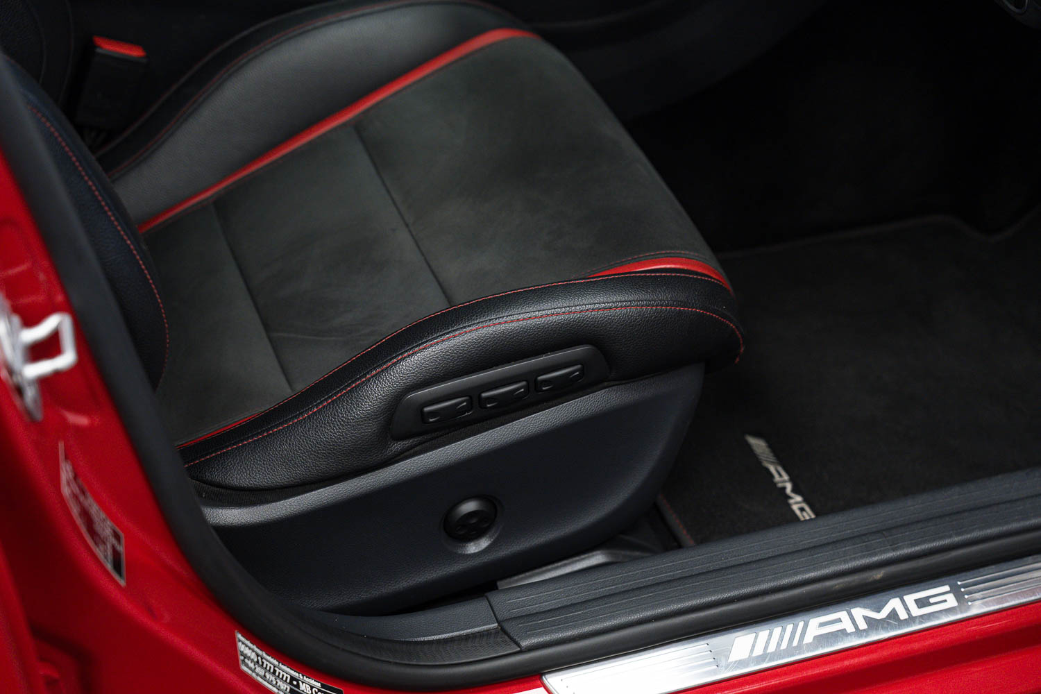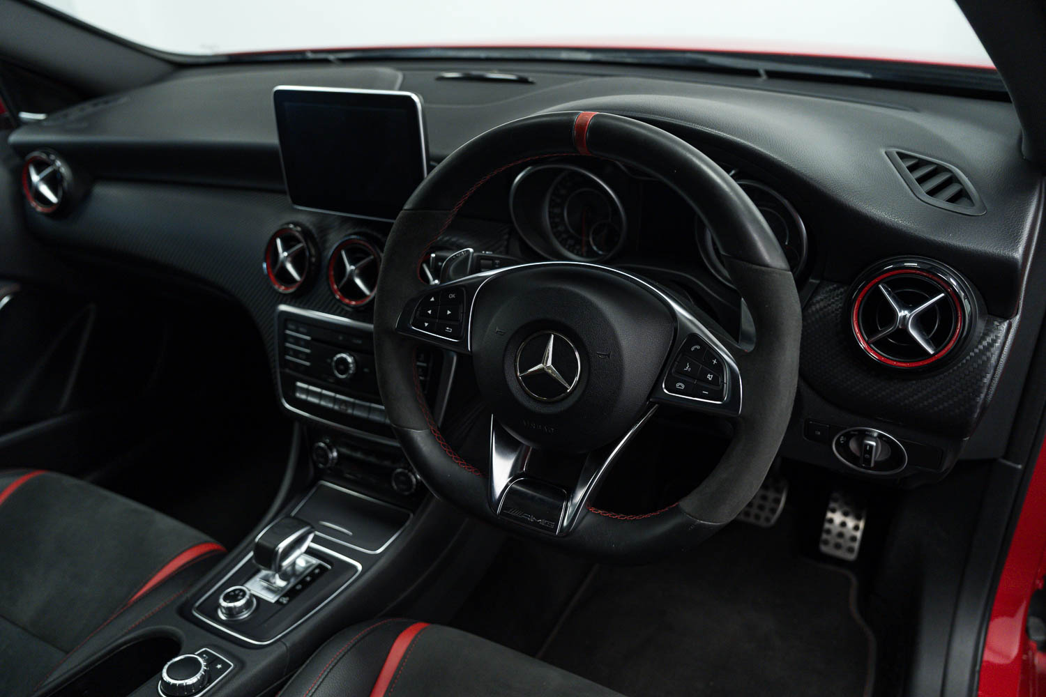 Lovely options list Inc. AMG Aerodynamics Package, 19in Alloy Wheels - AMG Cross-Spoke, AMG Night Package, Privacy Glass, Front & Rear Parking Sensors, Reverse Camera, Auto Lights & Wipers, Harman Kardon Stereo, Electric Memory Front Seats, Keyless Entry & Start, Auto Dimming Rear View & Side Mirrors, Multi Function Steering Wheel, DAB Digital Radio Reception, Tyre Pressure Monitoring System (TPMS), Heated Front Seats, Dual Zone Climate Control, Sliding Front Arm Rest, USB Inputs, AMG Performance Steering Wheel, Sliding Panoramic Sunroof, Electrically Folding Door Mirrors, Adaptive High Beam Assist, Ambient Lighting, Brake Calipers - Red, Mercedes Dynamic Select, Satellite Navigation, Bluetooth Phone Connection.